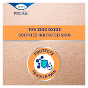 Die TENA ProSkin Zinc Cream ist eine beruhigende Hautschutzcreme mit 10 % Zinkoxid, entwickelt zur Pflege gereizter oder geröteter Haut im Rahmen der Inkontinenzversorgung. Die parfüm- und konservierungsstofffreie Zusammensetzung unterstützt die Hautbarriere, lässt sich angenehm auftragen und wieder abnehmen (Tube 100 ml).